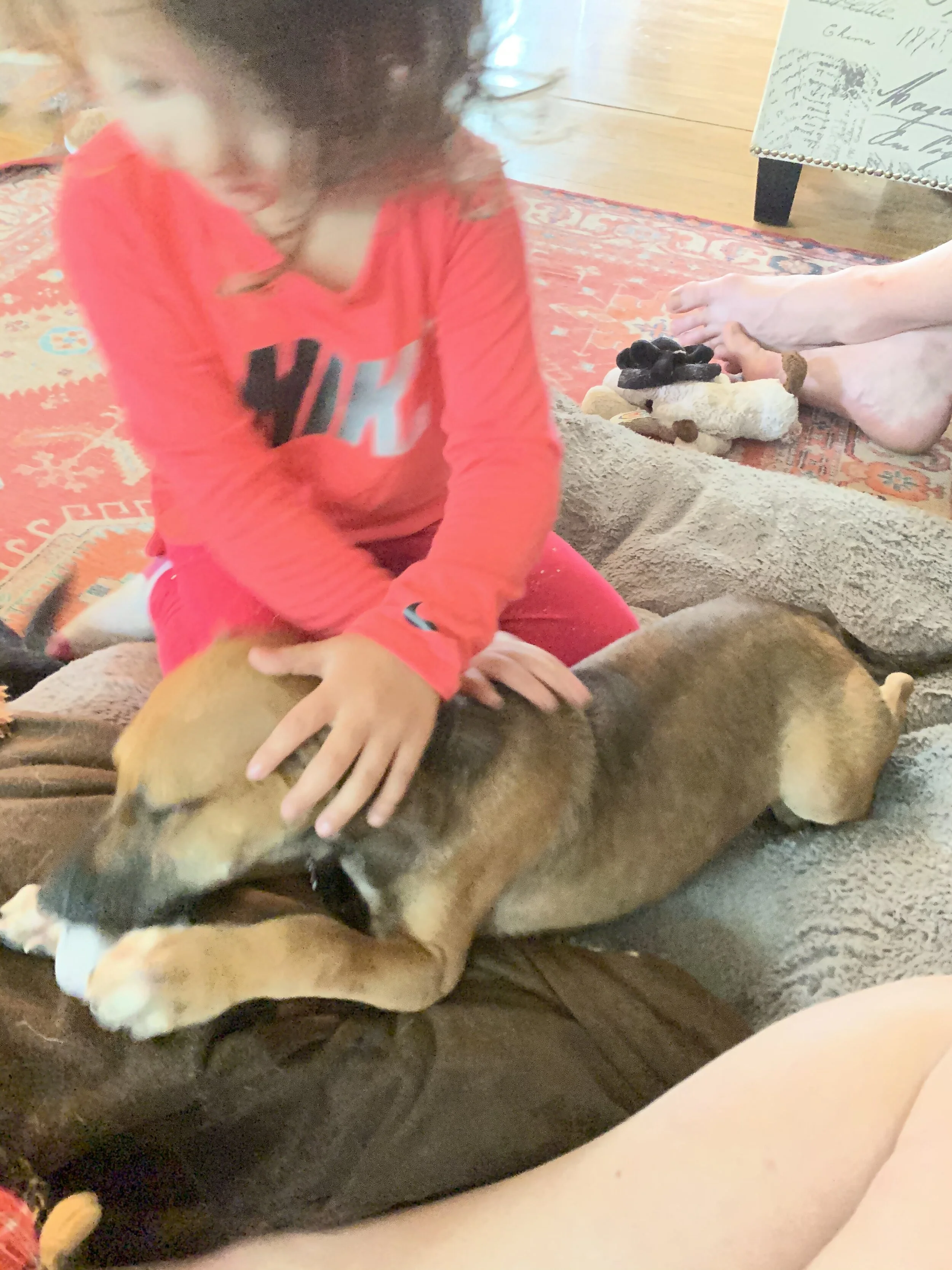 Walnut loves to play with everyone! He got to meet a 3-year-old and thought she was so fun! He got toys, snuggles, and even tolerated a hug for a minute until the adults got the 3-year-old to understand dogs sometimes don't love hugs. He was the best boy!