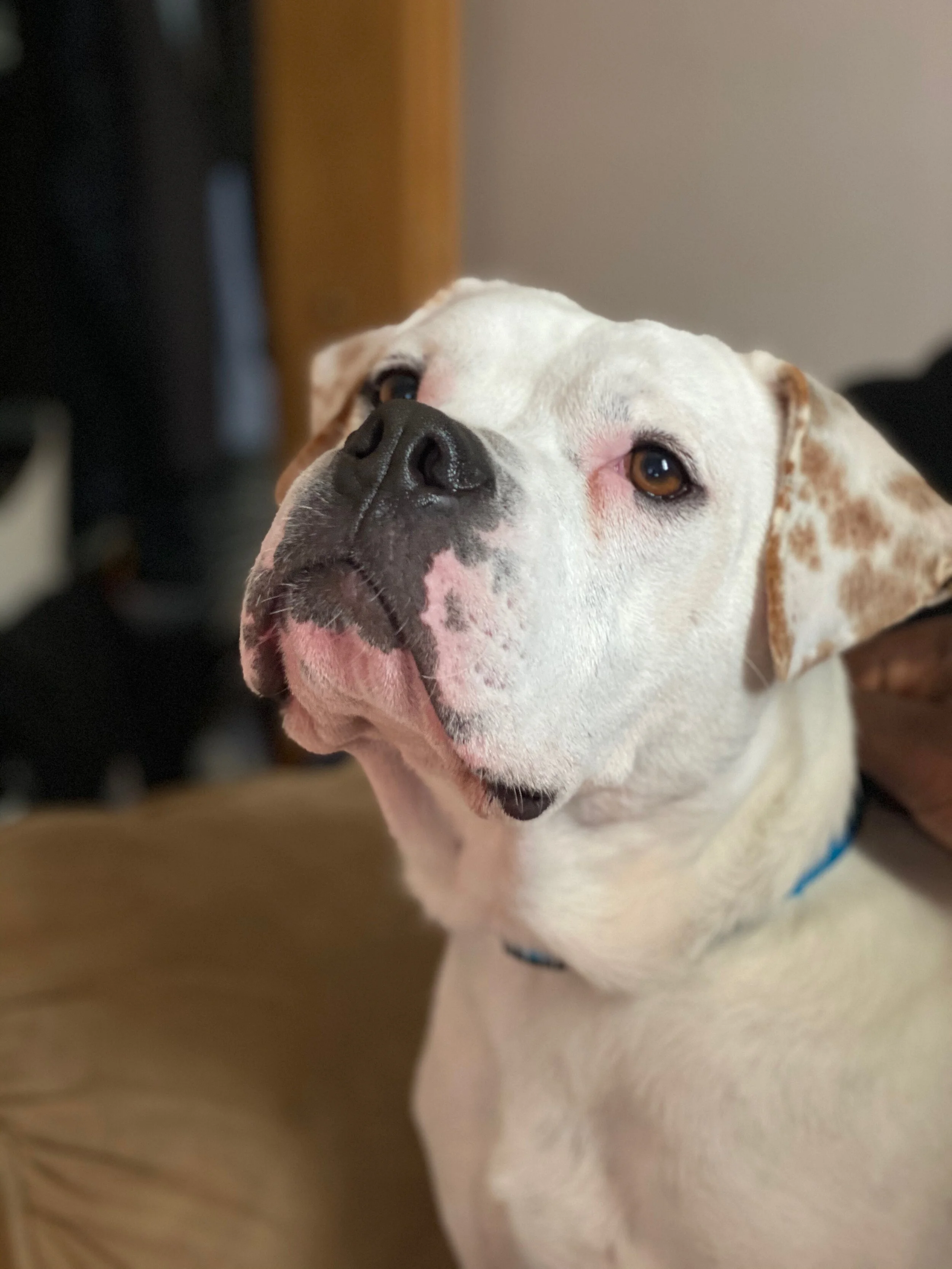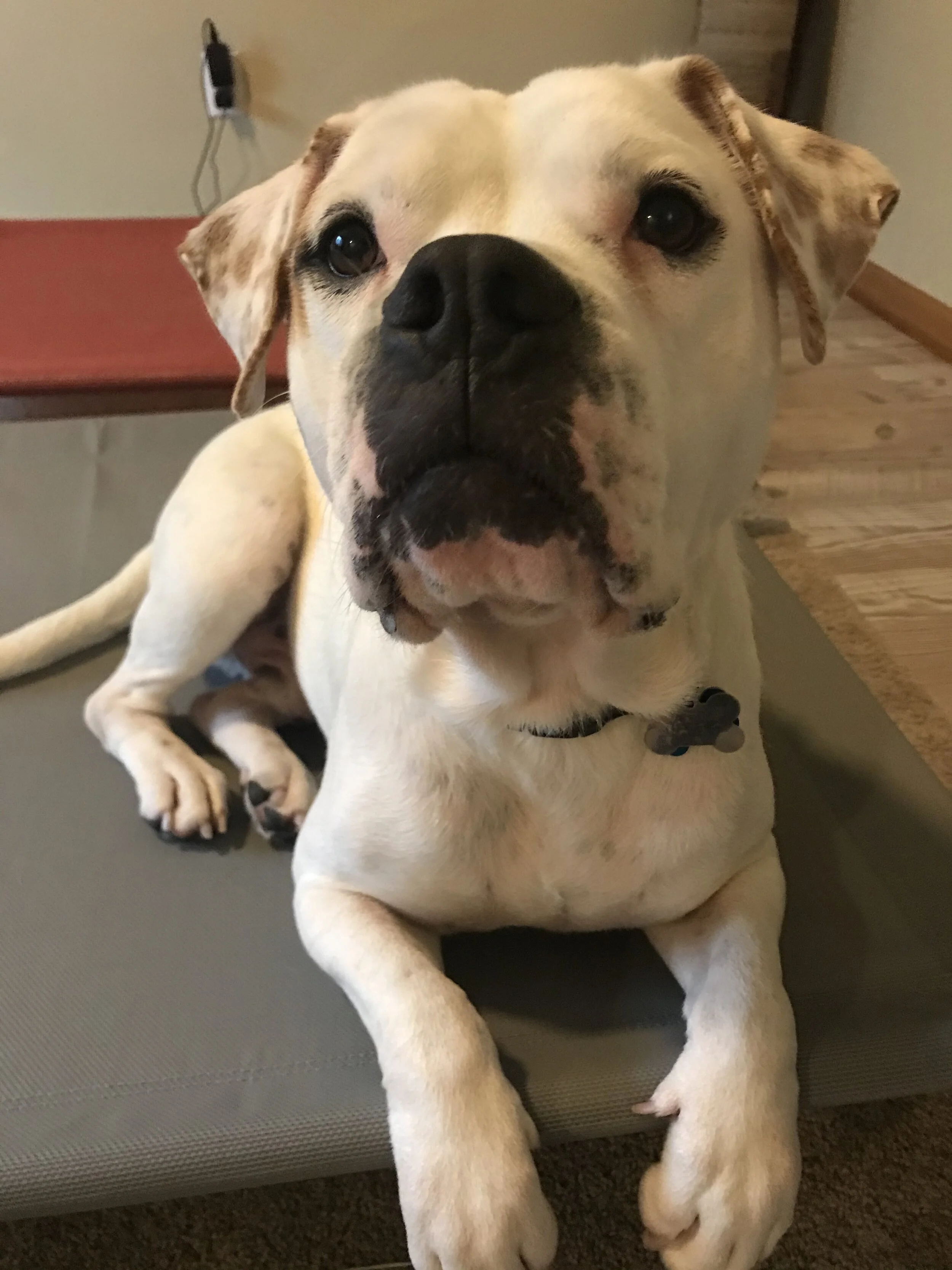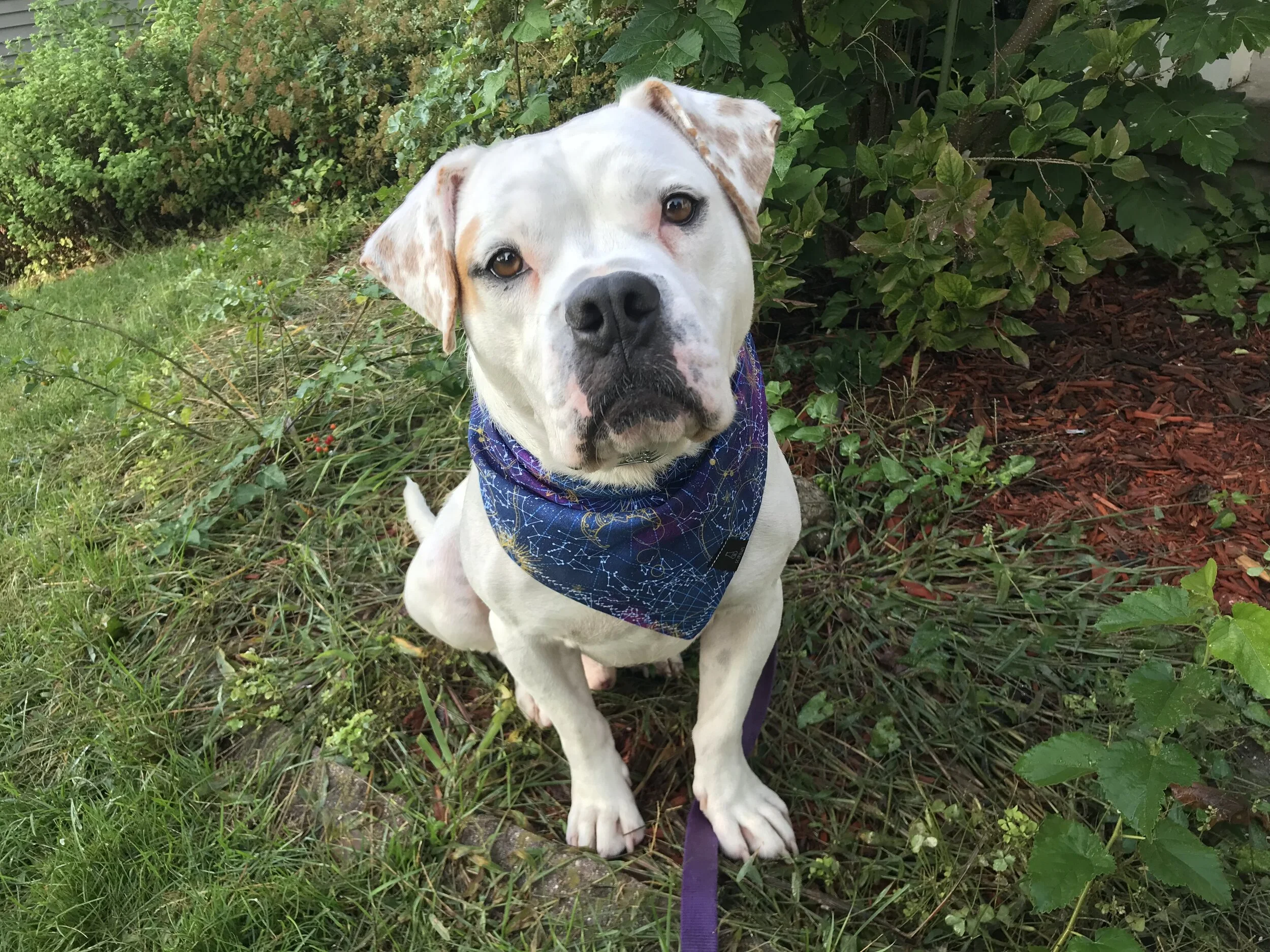Xander is a phenomenal dog who has settled into a routine in our structured household. When walking, I hardly feel him on the leash (no pulling!), and he is quiet as a mouse when in his crate. He gets along with our two bulldogs without any issues and is the sweetest companion. I am not a runner, but he would be a great running or hiking buddy with his energy and ability to quickly follow commands. At first, Xander wanted to chase our resident cat, but after a few weeks, he has learned to co-exist peacefully with her and watches her from afar, respectfully. She can walk by him without his even flinching! Xander has not been kid-tested, but I would venture to guess that he'd do well in a family setting as long as the children are respectful and gentle.